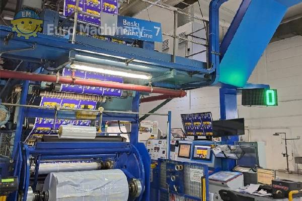 CERUTTI RB 908 Rotocalco permette di stampare a 10 colori su PE, PP, OPP, PET e carta, larghezza di stampa 1180 mm Rotocalco utilizzata nel settore della stampa di film e imballaggi flessibili per produrre materiali stampati multicolore ad alta risoluzione. Produttore: Cerutti BOBST Modello: RB 908 M4 Numero di colori: 10 colori Materiale da stampare: PE, PP, OPP, PET, carta Larghezza di stampa: 1180 mm Larghezza del materiale: 1200 mm Larghezza minima del nastro: 700 mm Max. Diametro del rotolo: 800 mm Peso massimo del rotolo. Peso del rotolo: 1000 kg Velocità meccanica: fino a 300 m/min Numero di asciugatrici: 13 + prima dell’asciugatrice Accessori:- Scariche elettrostatiche (Eltex)
