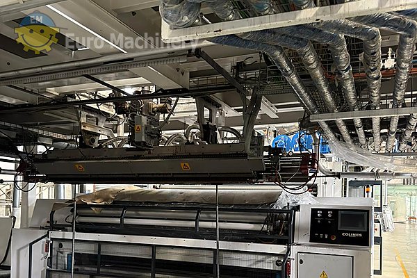 La Colines Polycast è una linea di estrusione di film cast multistrato ad alta capacità, dotata di 5 estrusori con capacità di produzione fino a 1100 kg/ora. È stata progettata per la produzione di film CPP e CPE con un avanzato sistema di stampi computerizzato e capacità di avvolgimento automatico.