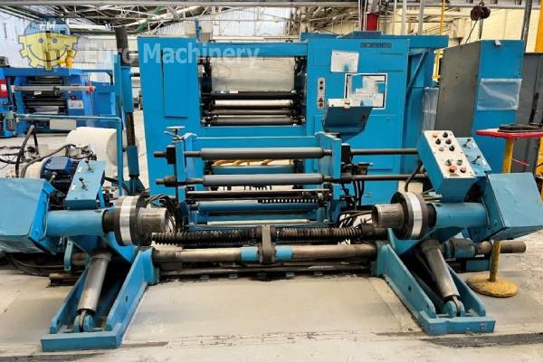 Taglierina riavvolgitrice GOEBEL Polyslit per tagliare alluminio, film e carta. Questa tagliatrice riavvolgitrice è in grado di tagliare da 50 mm a 800 mm, con una velocità di lavoro di 800 m/min. Marca e modello: GOEBEL POLYSLIT Materiale da tagliare: Alluminio, pellicola, carta Larghezza di taglio: Min 50 mm – max 800 mm Spessore min-max: 0,009 – 0,051 mm Unwinder:- Diametro massimo del rotolo: 1.100 mm