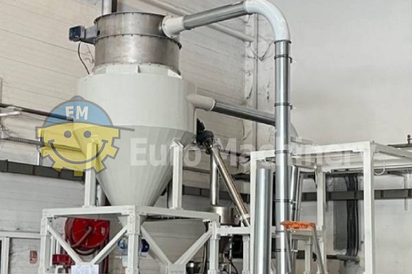 Il micronizzatore Periplast MP500 per PP, PE, PS, ABS, PA, APET, PMMA alimenta materiale frantumato da 6 a 10 mm e lo micronizza a 250 – 600 μm, con una produzione fino a 400 Kg/h. Marca e modello: Periplast MP500 500mm Materiale che può essere lavorato: Indicato per la micronizzazione di PP, PE, PS, ABS, PA, APET, PMMA; Applicazione: Il materiale viene alimentato ad alta velocità al centro di una serie di dischi fissi e di una serie di dischi rotanti; la forza centrifuga porta il materiale micronizzato alla linea di trasporto; Produzione: Alimentazione di materiale frantumato da 6 a 10 mm e sua micronizzazione a 250 – 600 μm; Produzione: Fino a 300 – 400 kg/h, a seconda del materiale Potenza installata: 55 kW 7,5 kW arti principali e accessori:- Tramoggia di alimentazione in acciaio inox con alimentatore a vibrazione;